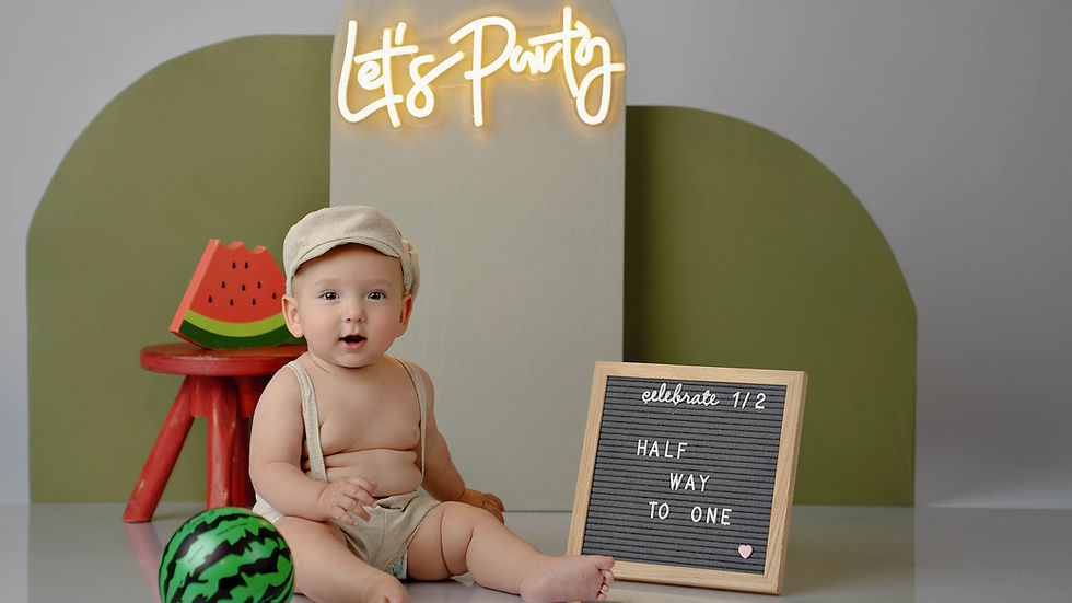In addition to the birthday session, a Halfway Session is also available for babies who have just started sitting up on their own, usually around six months old. This moment is just as special, marking the transition into a more active and interactive phase of development.